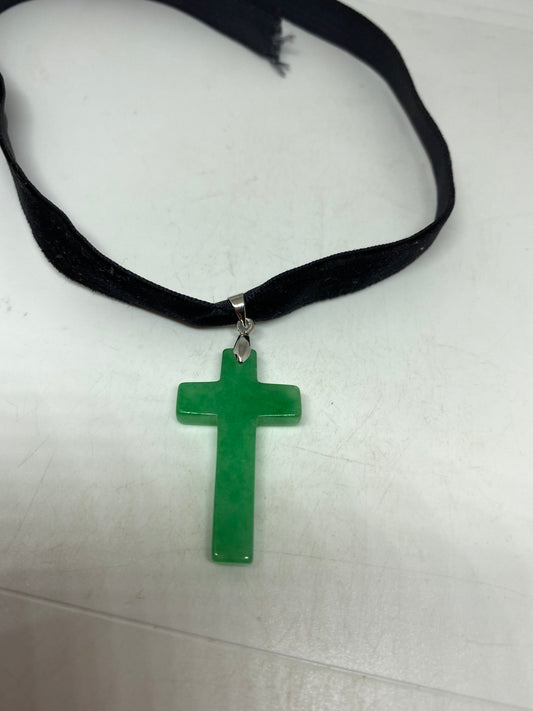 Vintage Fun Jade Choker 925 Sterling Silver Cross Pendant Necklace