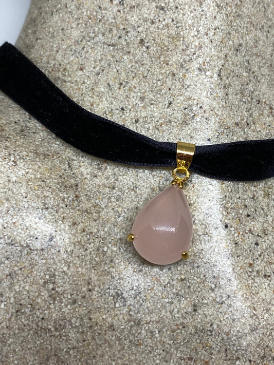 Vintage Rose Quartz Choker Gold finished Pendant Necklace