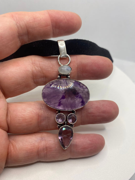 Cabochon Cut Droplet Deep Purple Genuine Amethyst Necklace