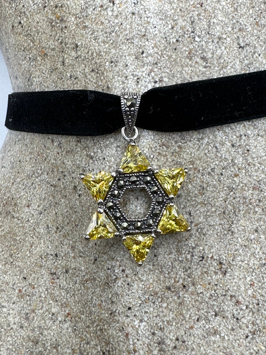 Vintage Marcasite Star of David Choker 925 Sterling Silver Pendant Necklace
