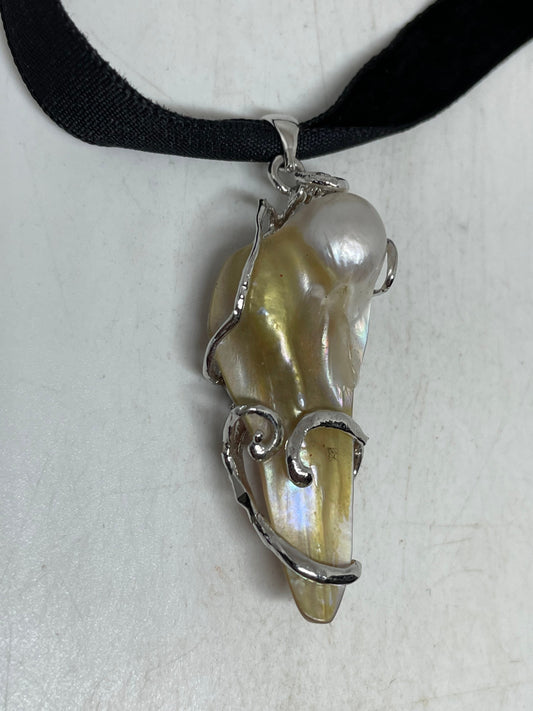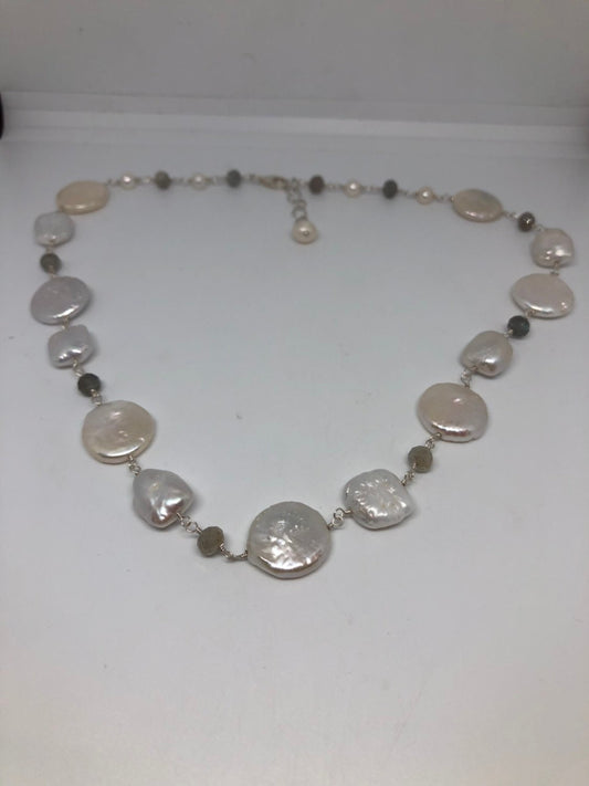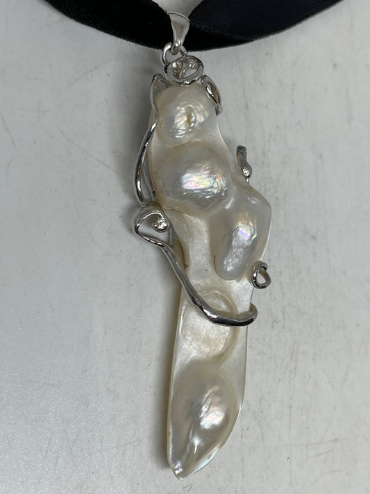 Vintage White Sapphire 925 Sterling Silver Mother of Pearl Dangle Pendant Necklace