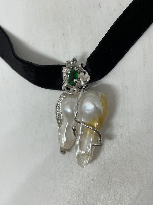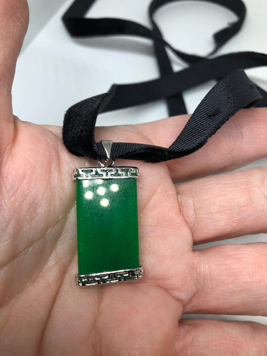 Vintage Green Jade Choker Silver Finish Necklace Pendant