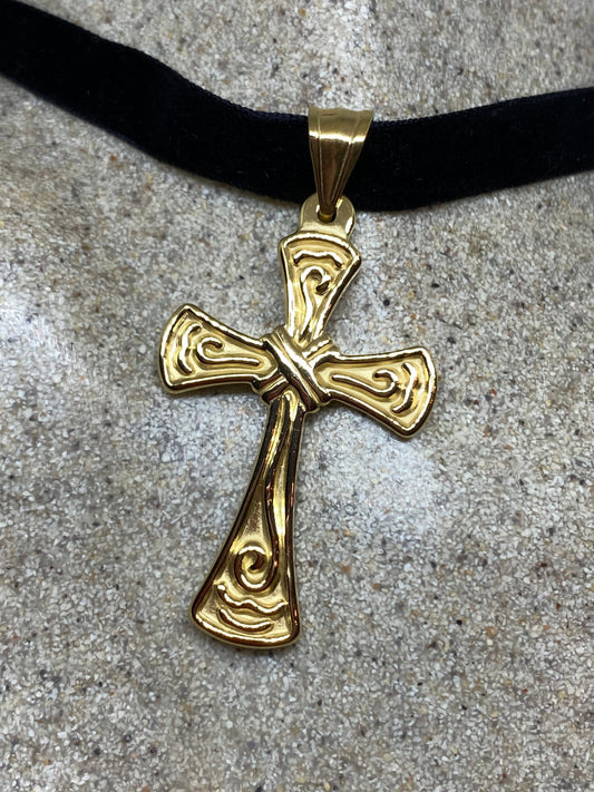 Vintage Celtic Golden Stainless Steel Cross Pendant Necklace