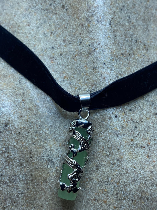 Vintage Green Jade Choker Silver Finish Dragon Necklace Pendant