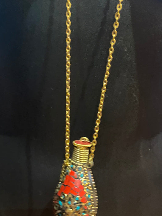 Vintage Perfume Oil Bottle mosaic Inlay Gemstone Pendant Necklace