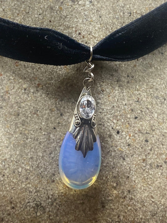 Vintage Opal milk glass 925 Sterling Silver Choker Necklace