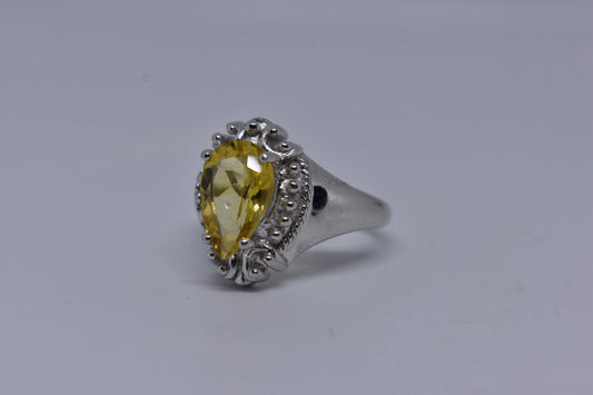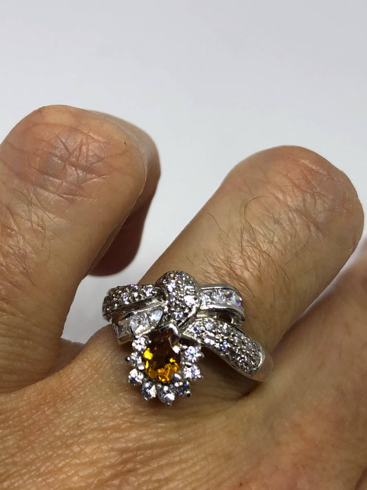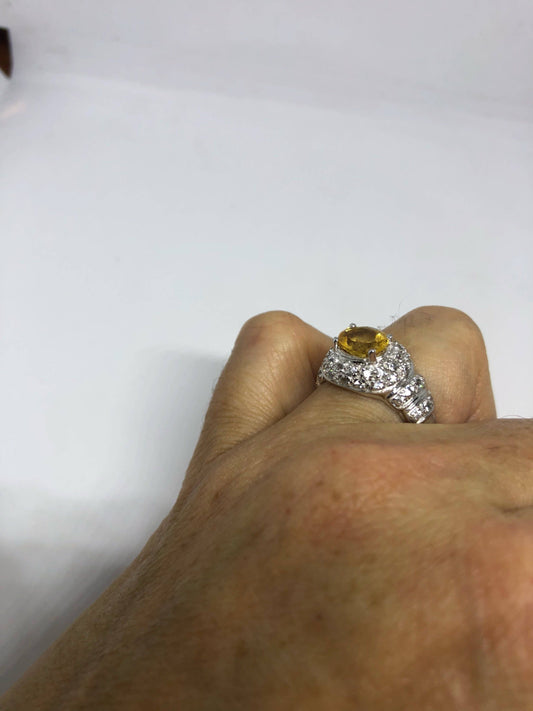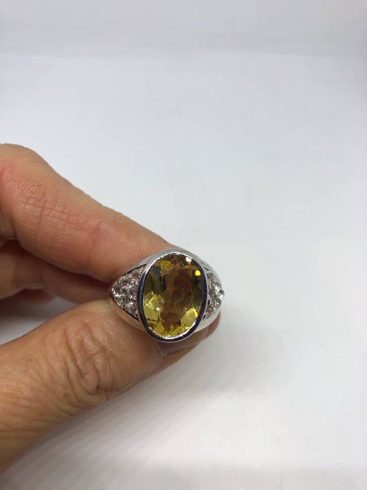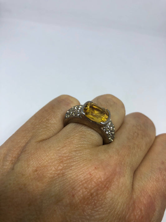 Vintage Golden Citrine Ring Deco 925 Sterling Silver