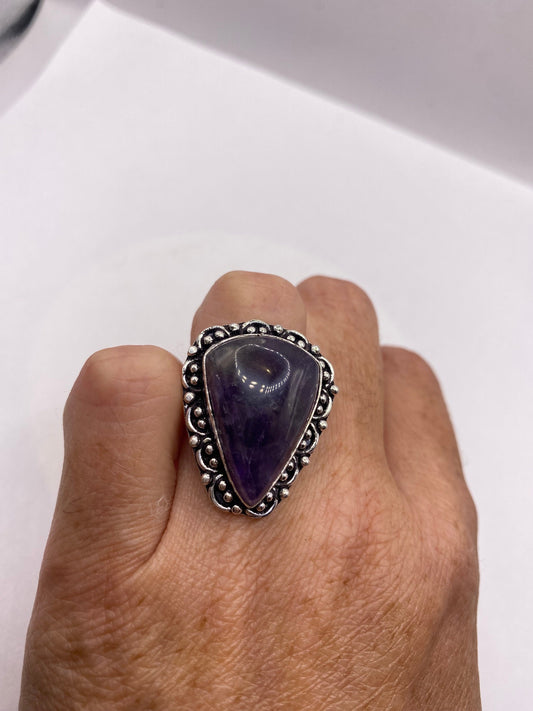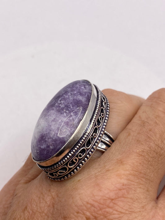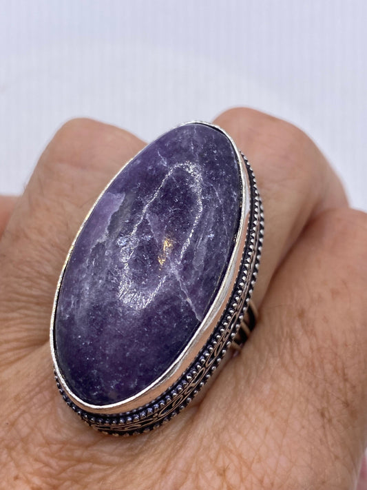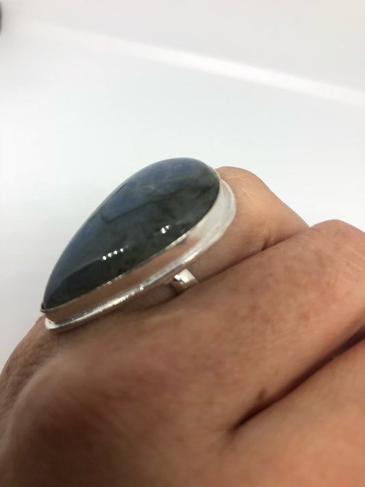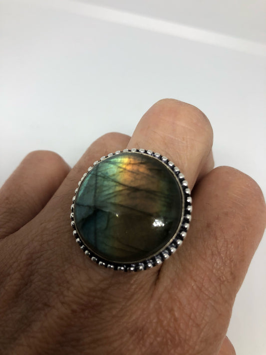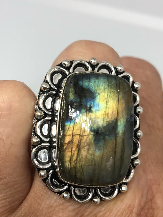 Vintage Large Labradorite Rainbow Moonstone Stone Silver Ring