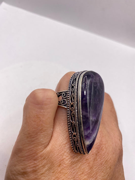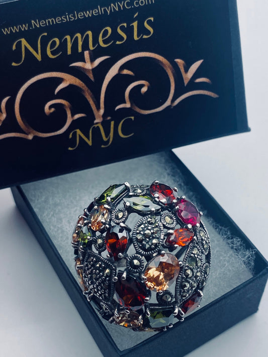 Vintage Genuine Swiss Marcasite Crystal Setting 925 Sterling Silver Cocktail Ring Size 7