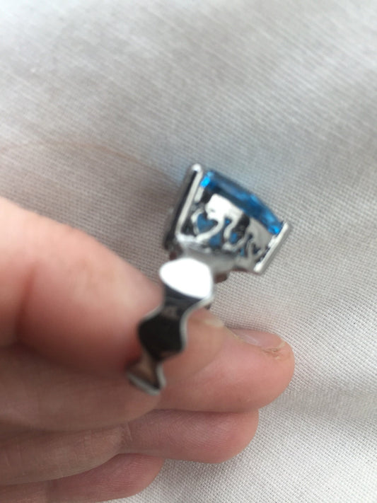 Vintage Genuine London Blue Topaz 925 Sterling Silver Black Rhodium Ring