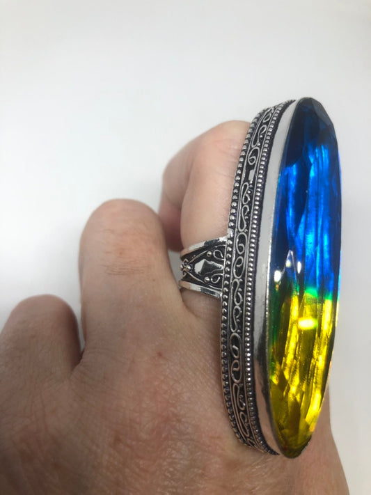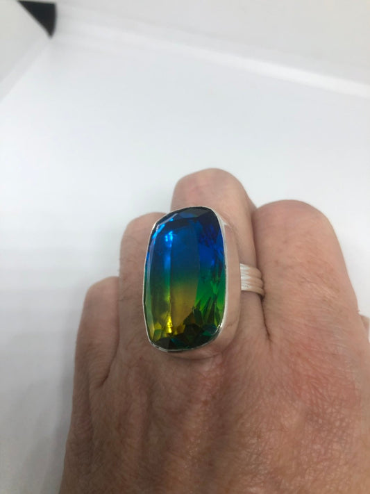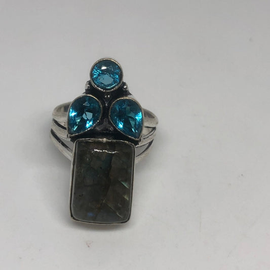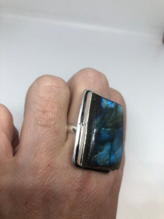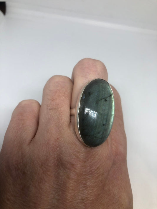 Vintage Large Labradorite Rainbow Moonstone Stone Silver Ring