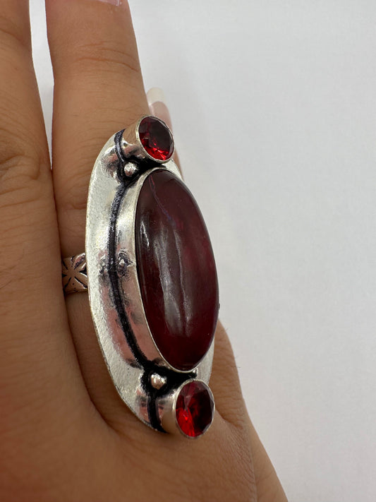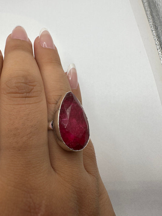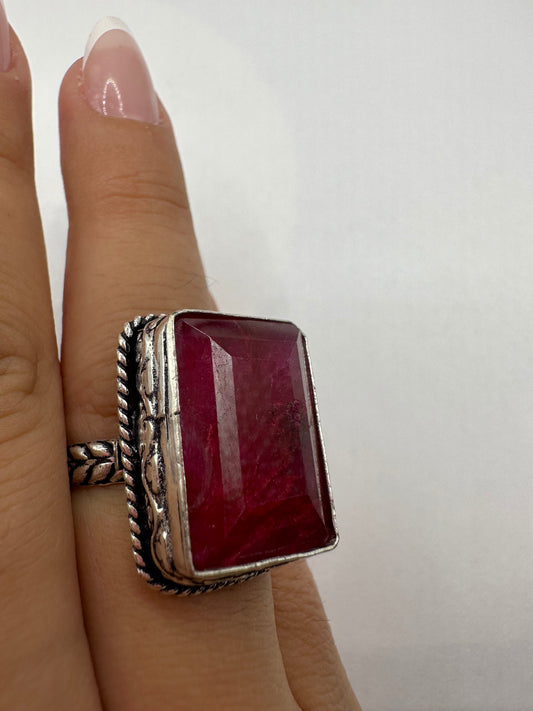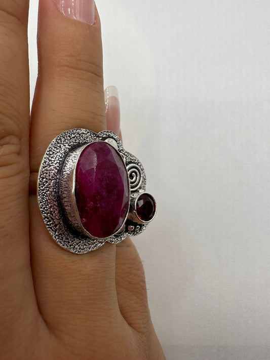 Vintage Handmade Raw Pink Ruby Silver Gothic Ring