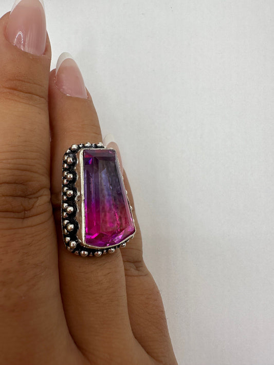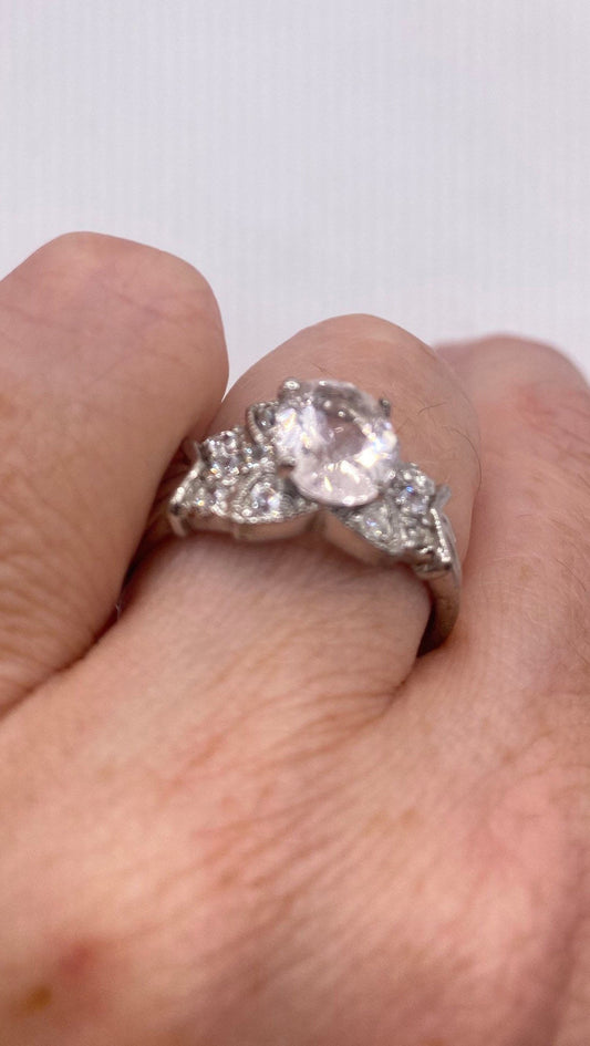 Vintage Pink Kunzite and white Sapphire Setting 925 Sterling Silver Gothic Ring