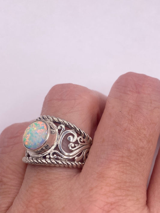 Vintage Fire Opal Ring 925 Sterling Silver Cocktail Band
