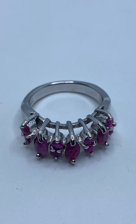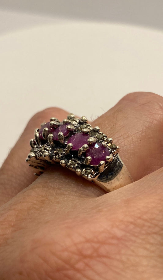 Vintage Red Ruby Marcasite 925 Sterling Silver Cocktail Ring