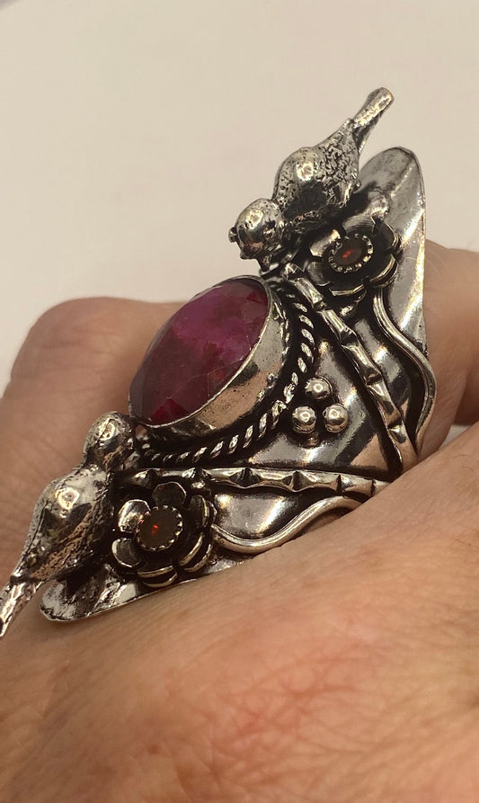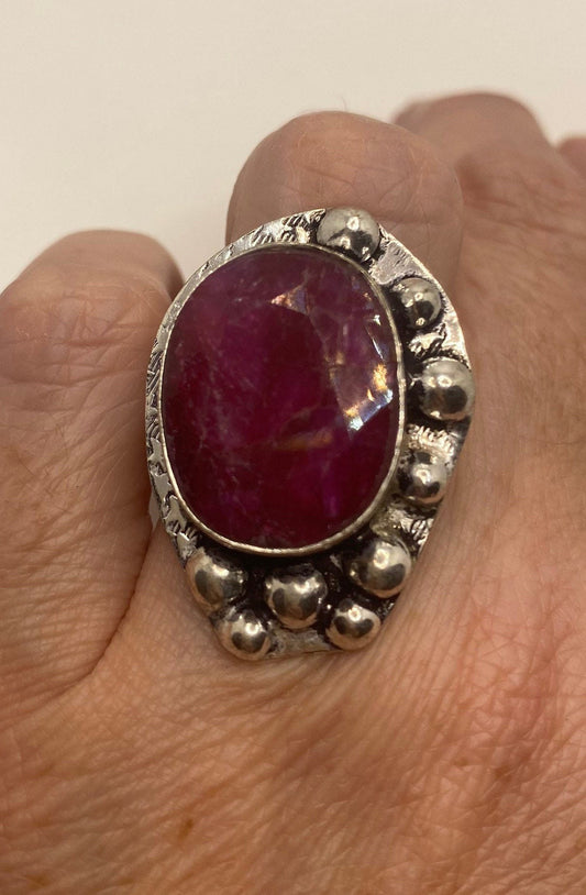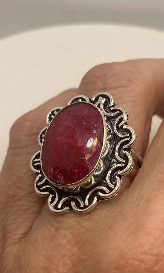 Vintage Handmade Raw Pink Ruby Silver Gothic Ring