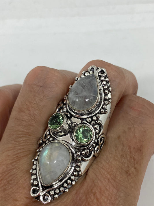 Vintage Blue Green Rainbow Moonstone Silver Ring