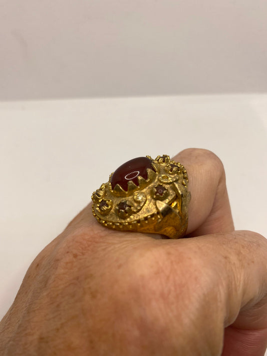 Vintage Red Carnelian Golden Bronze Ring