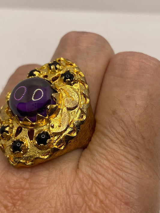 Vintage Purple Amethyst Glass Golden Bronze Ring
