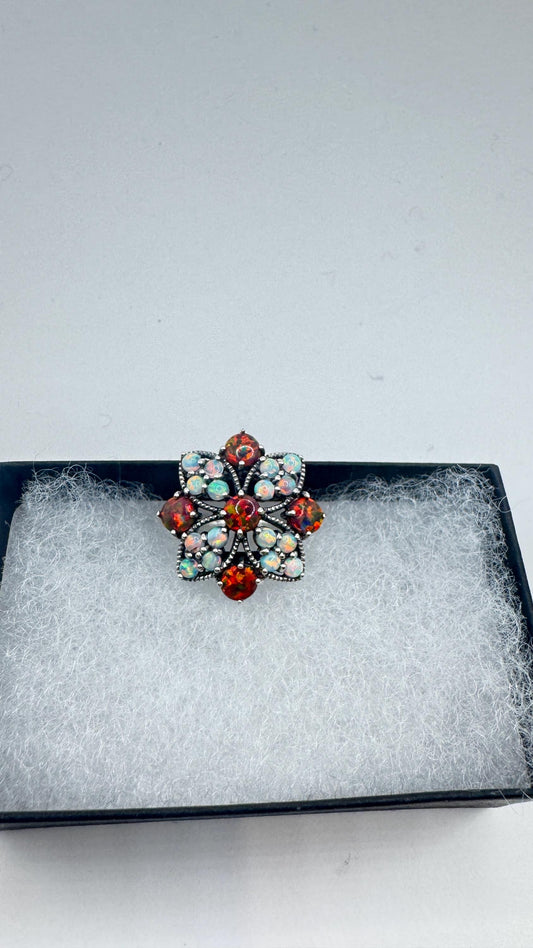 Vintage Garnet Crystal Ring 925 Sterling Silver