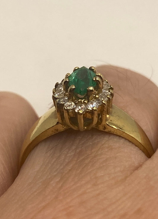Vintage Green Flourite White Sapphire Golden 925 Sterling Silver Ring