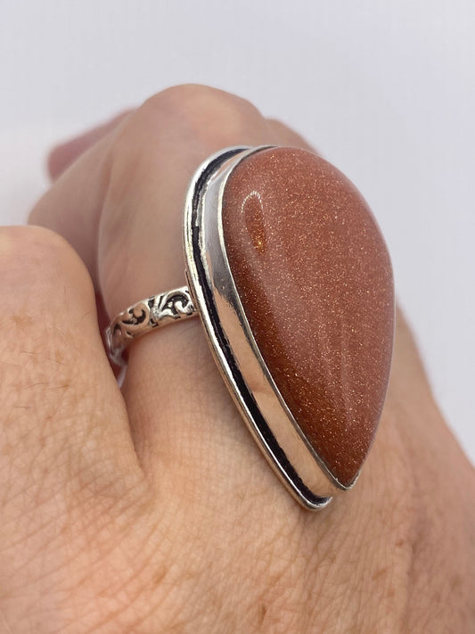 Vintage Goldstone Gold Sandstone Cocktail Ring