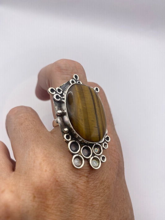 Vintage Tigers Eye Stone Silver Ring