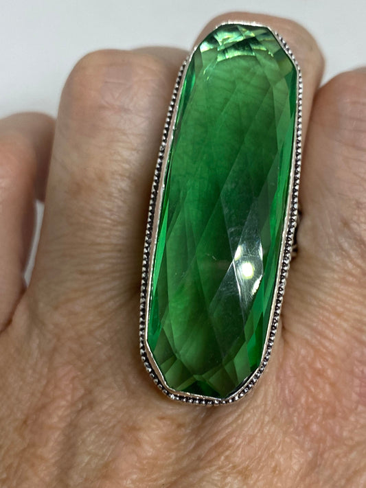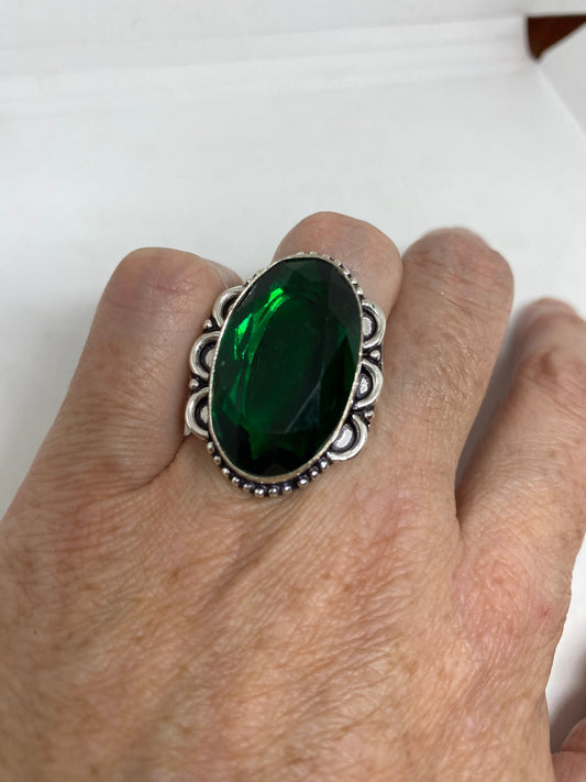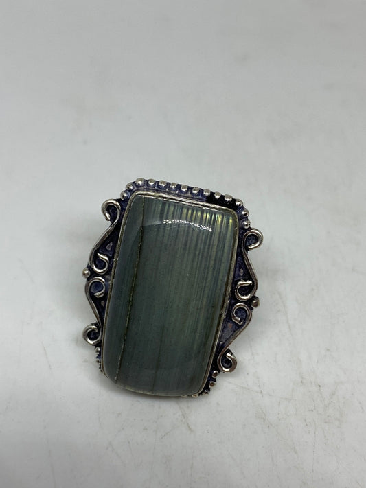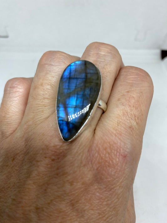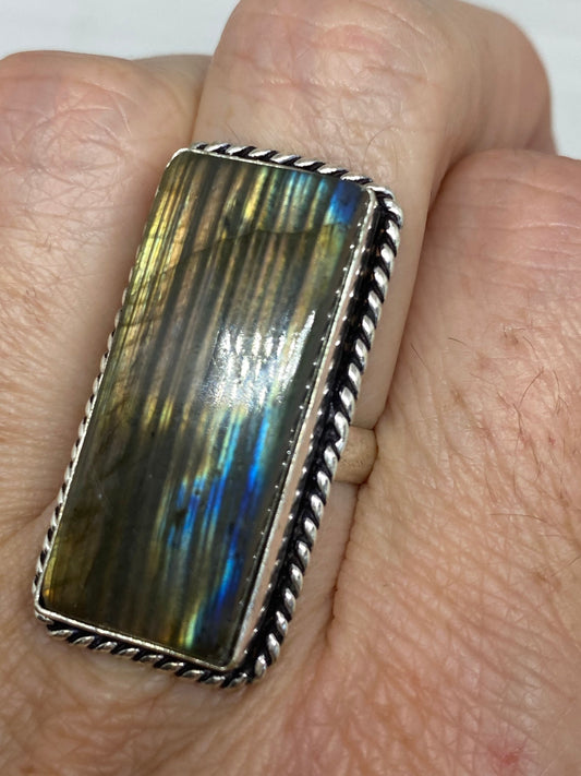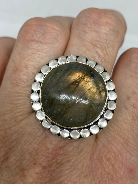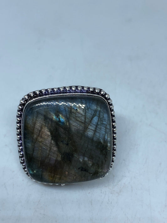 Vintage Large Blue Green Labradorite Stone Silver Ring