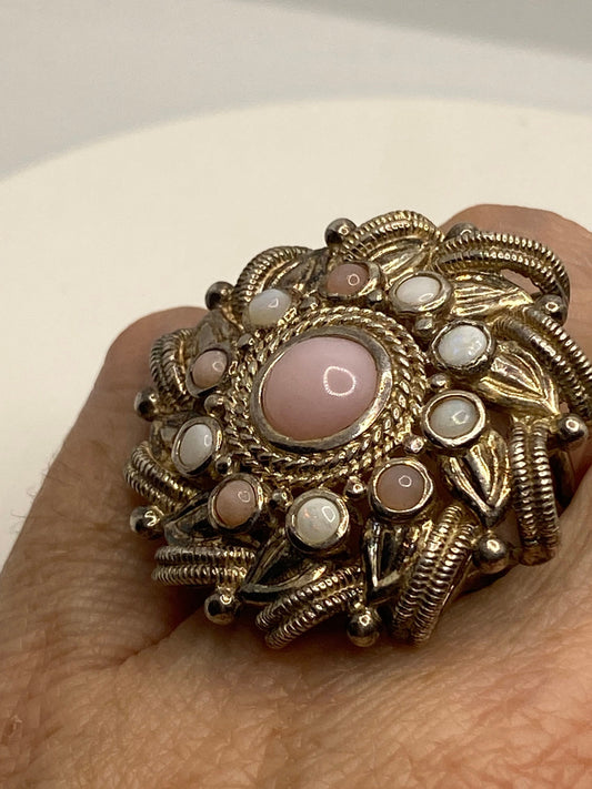 Vintage Rose White Opal 925 Sterling Silver Ring