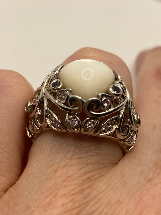 Antique White Mother of Pearl Filigree Sterling Silver Ring