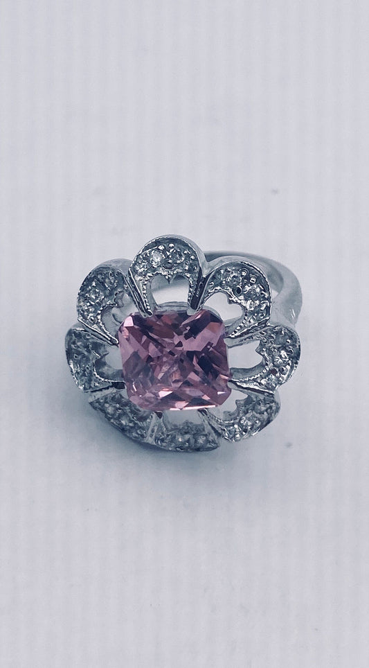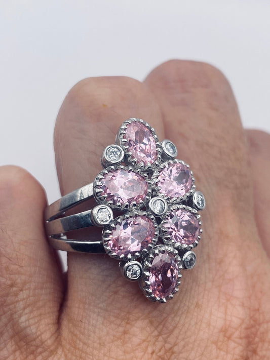 Vintage Pink Ice CZ Deco Ring 925 Sterling Silver Cocktail