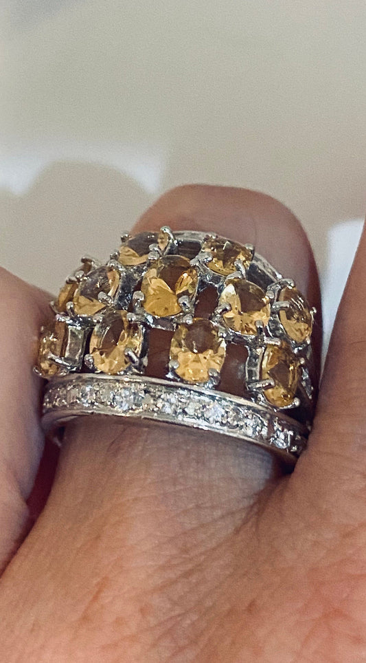 Vintage Golden Citrine and White Sapphire Wedding Band 925 Sterling Silver Ring