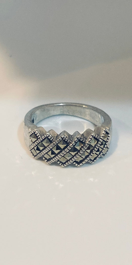 Vintage Genuine Swiss Marcasite Setting 925 Sterling Silver Gothic Ring