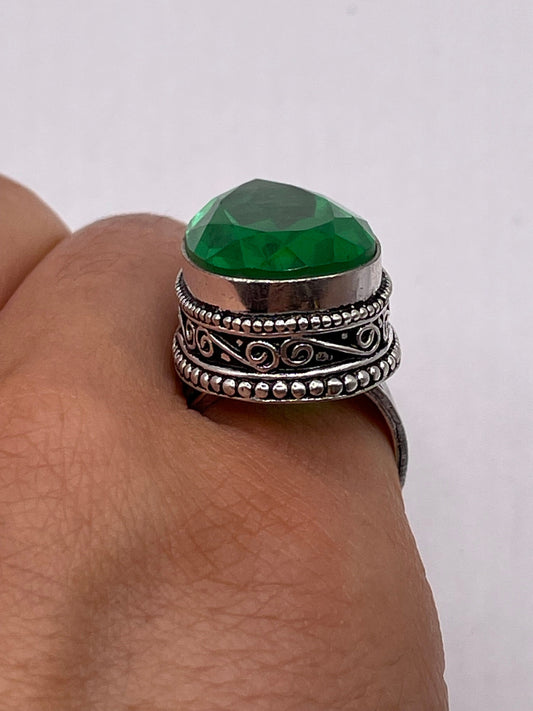 Vintage Green Agate Silver Cocktail Ring