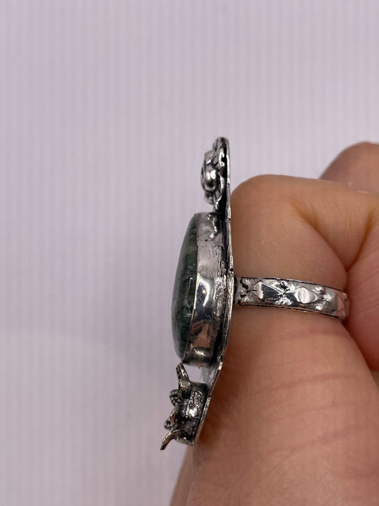 Vintage Green Moss Agate Cocktail Ring