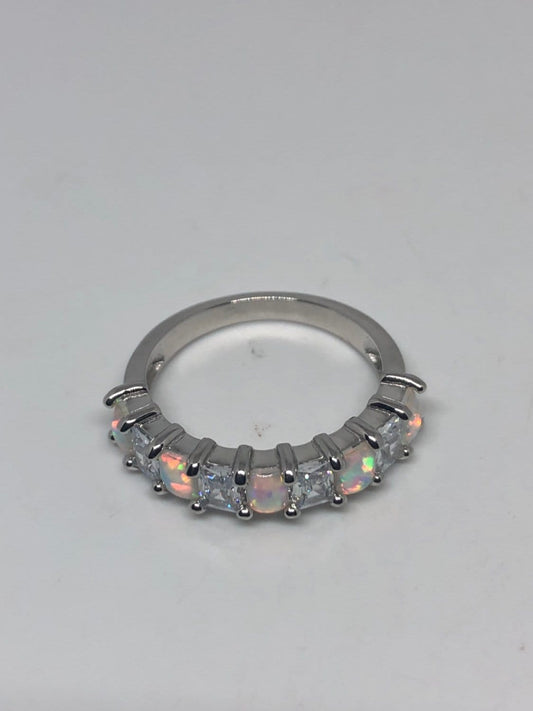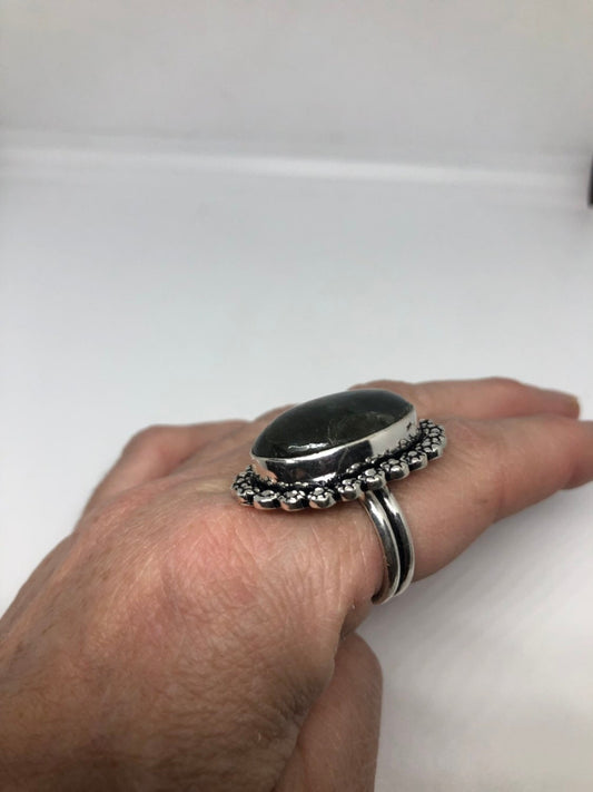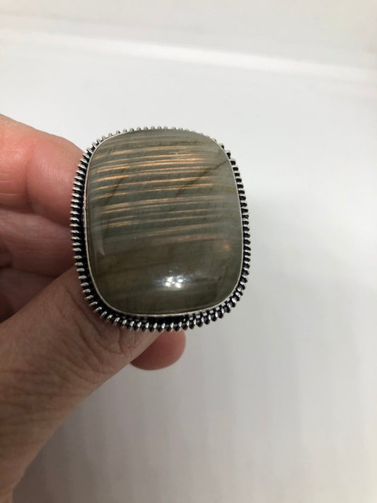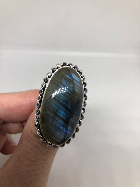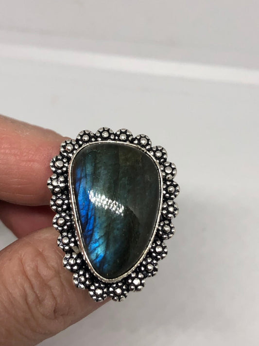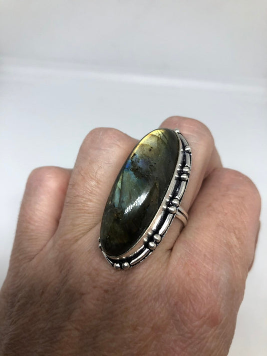 Vintage Large Labradorite Rainbow Moonstone Stone Silver Ring