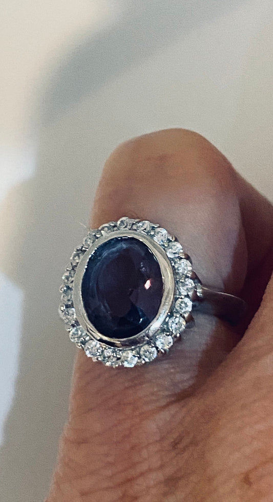 Vintage Purple Amethyst White Sapphire 925 Sterling Silver Cocktail Ring