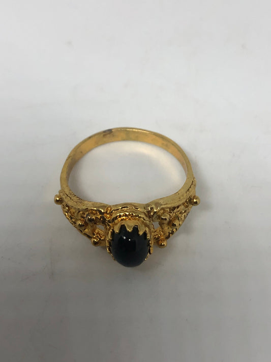 Vintage Black Onyx Golden 925 Sterling Silver Ring