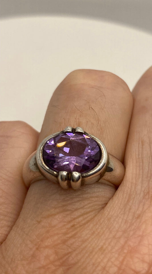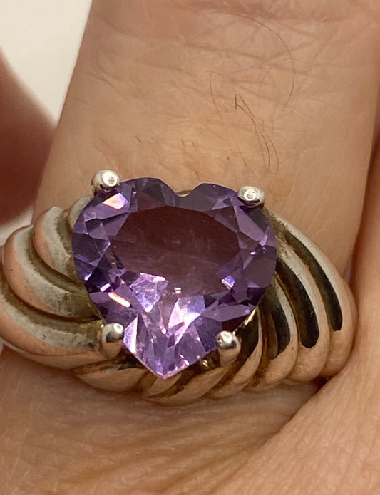 Vintage Purple Amethyst Heart 925 Sterling Silver Ring