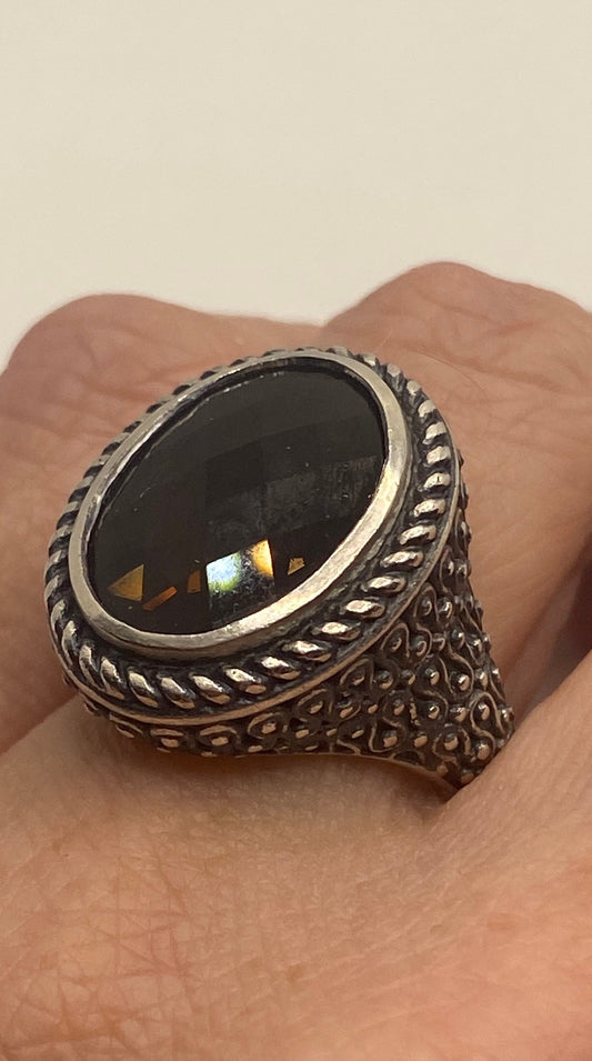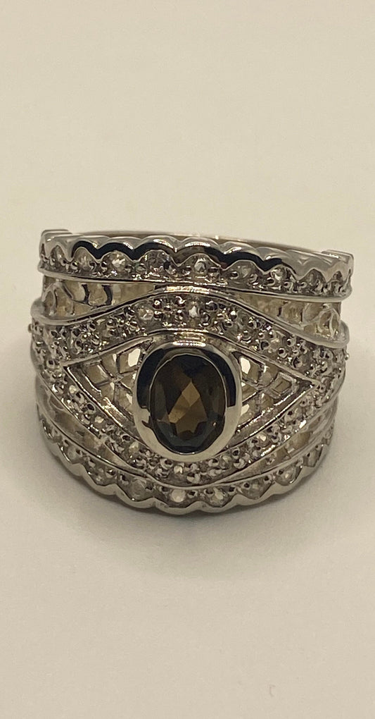 Vintage Smoky Topaz Setting 925 Sterling Silver Gothic Ring Size 7