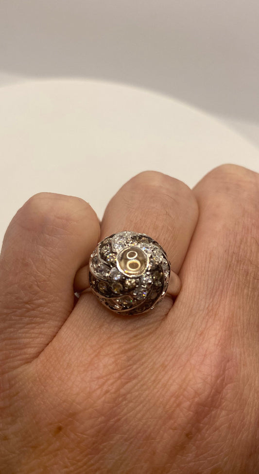 Vintage Cubic Zirconia Crystal 925 Sterling Silver Ring