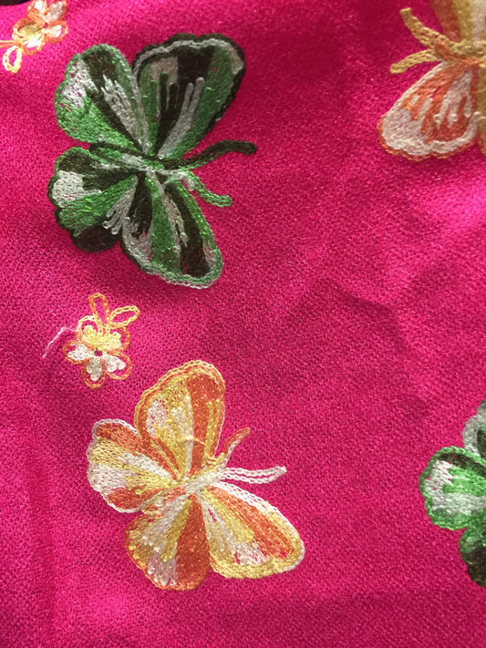 Vintage Styled Colored Butterfly Pashmina Shawl