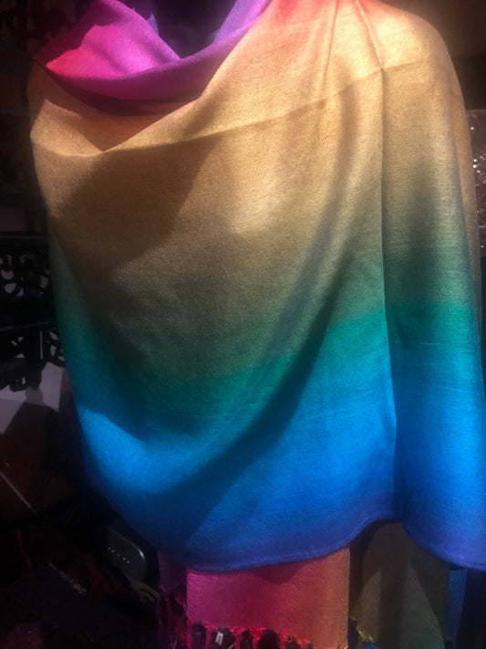 Vintage Rainbow Gay Pride Brocade Pashmina Scarf Wrap Shawl