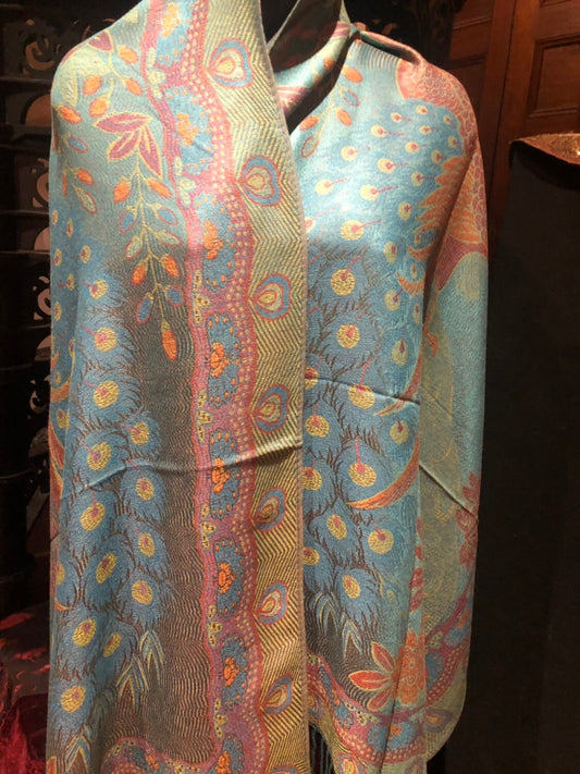 Vintage Peacock feather Brocade Pashmina Scarf Wrap Shawl