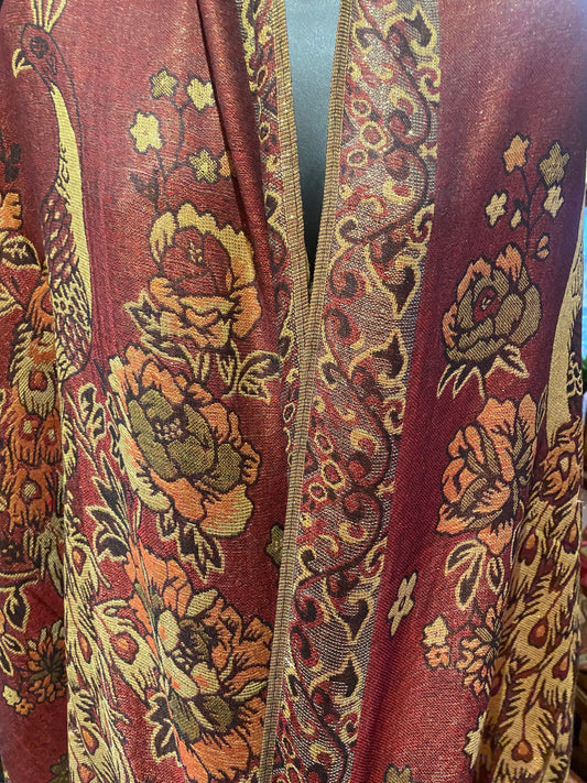 Vintage Burgundy Peacock Brocade Pashmina Scarf Wrap Shawl