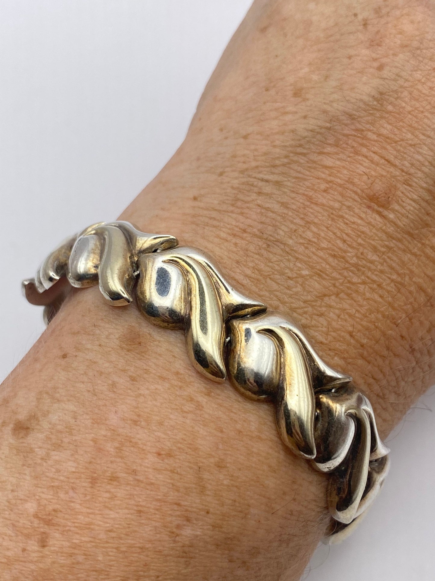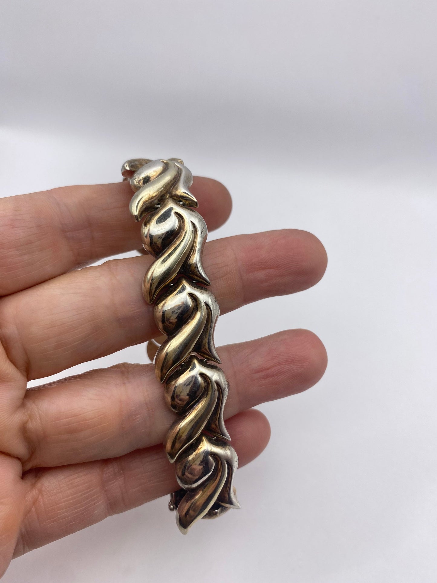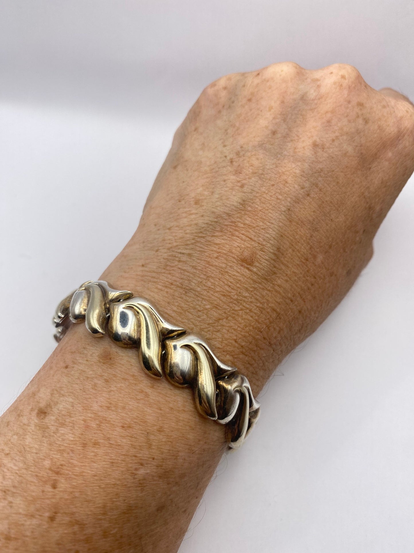 Vintage 925 Sterling Silver Filigree Flower Bracelet