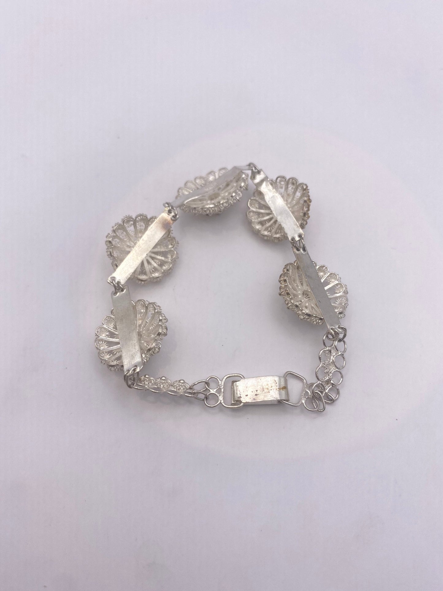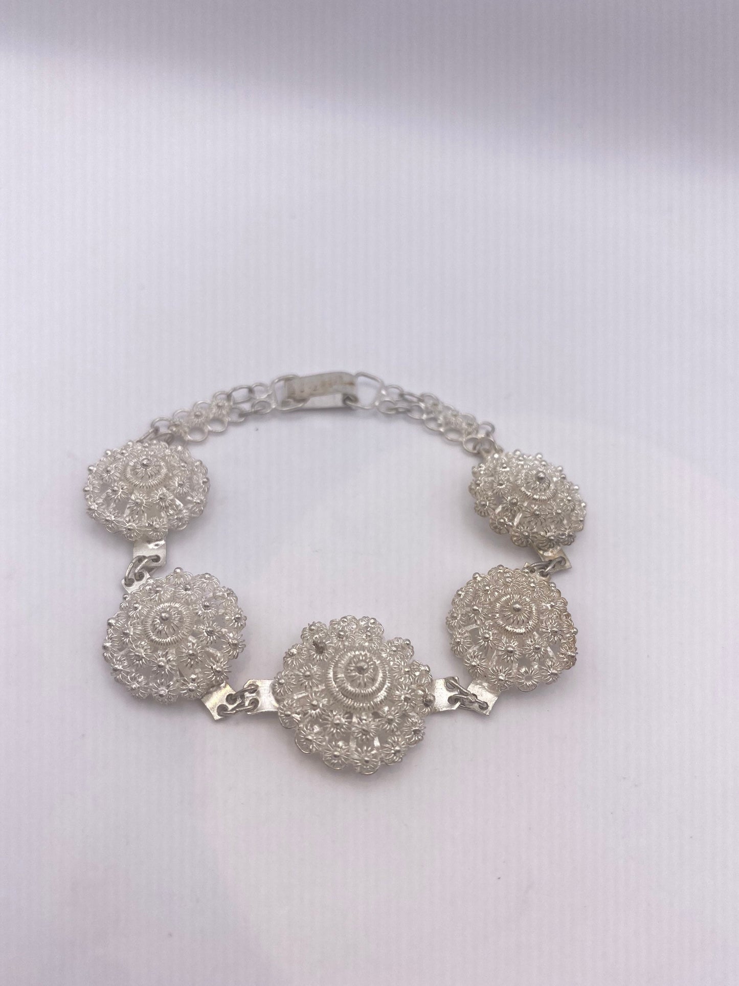 Vintage 925 Sterling Silver Filigree Flower Bracelet