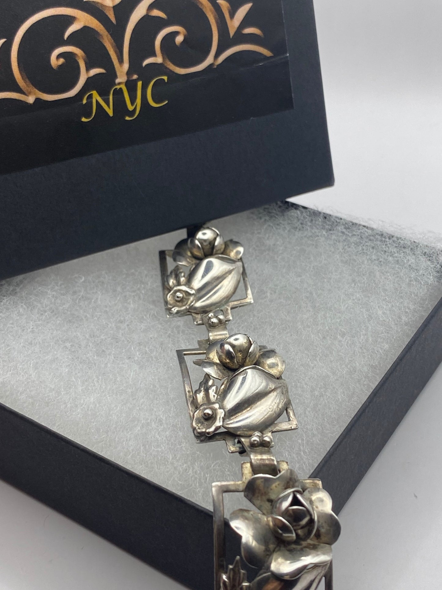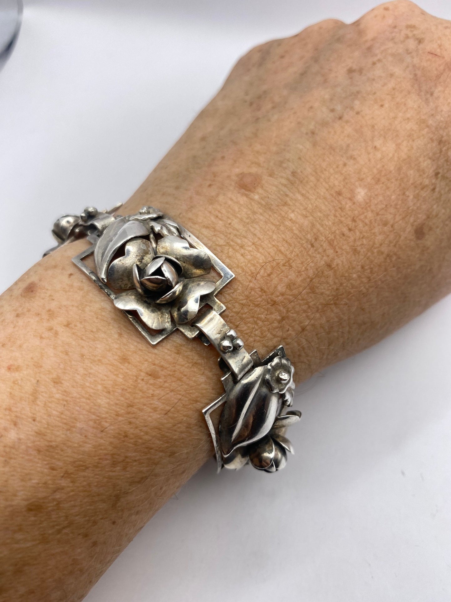 Vintage 925 Sterling Silver Filigree Flower Bracelet