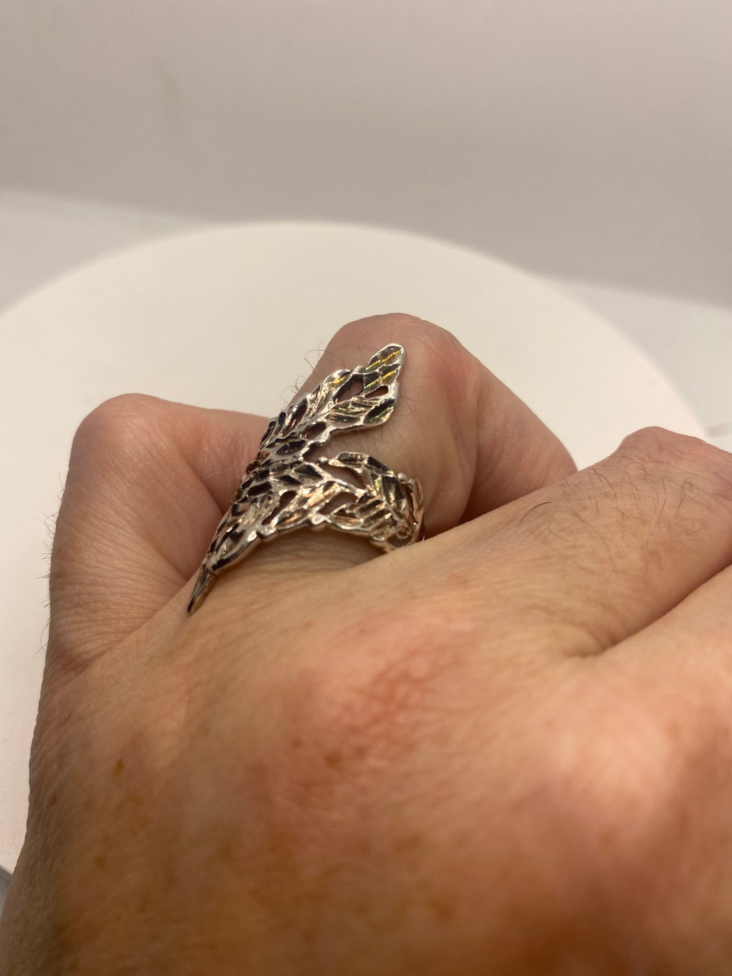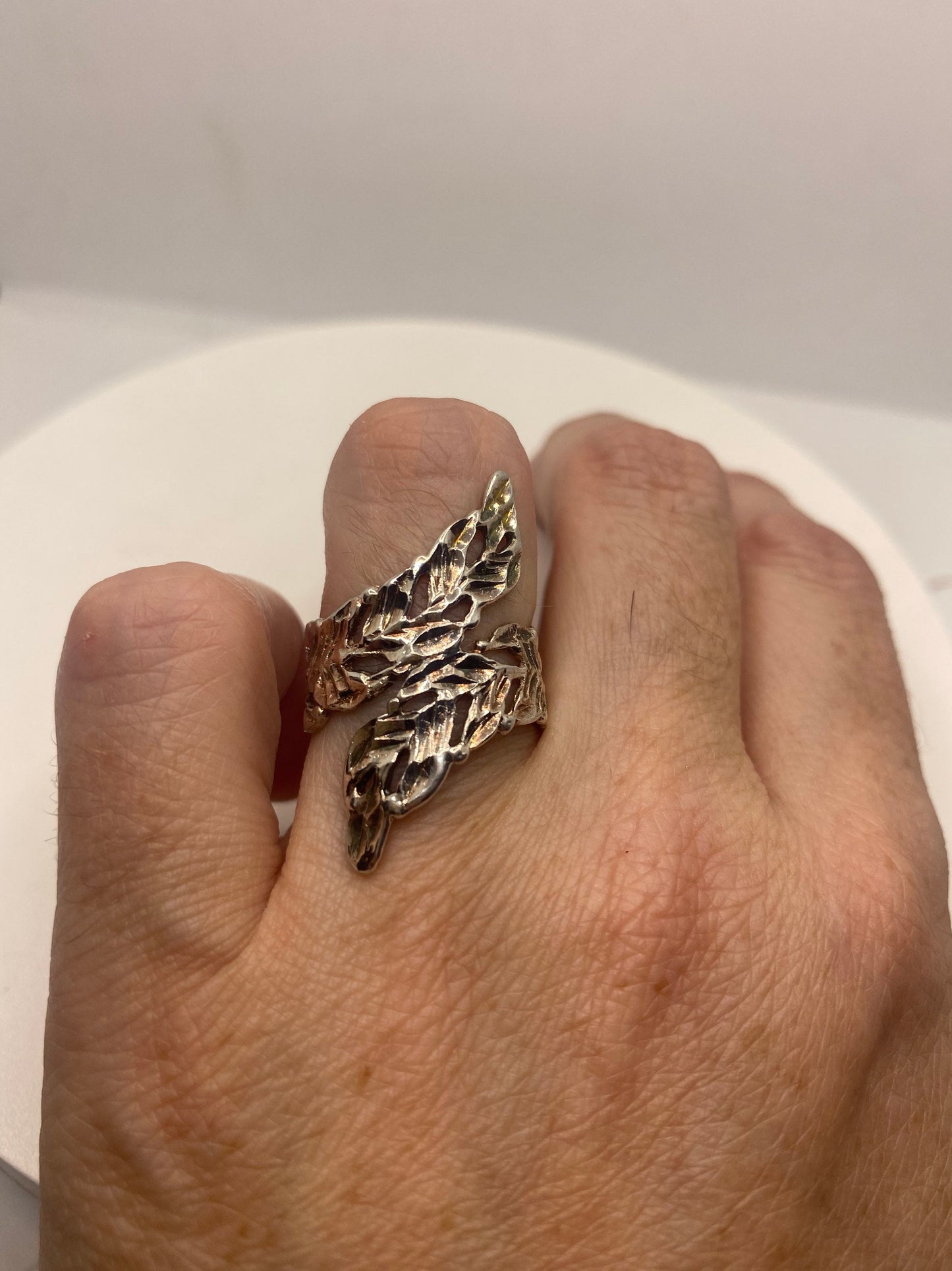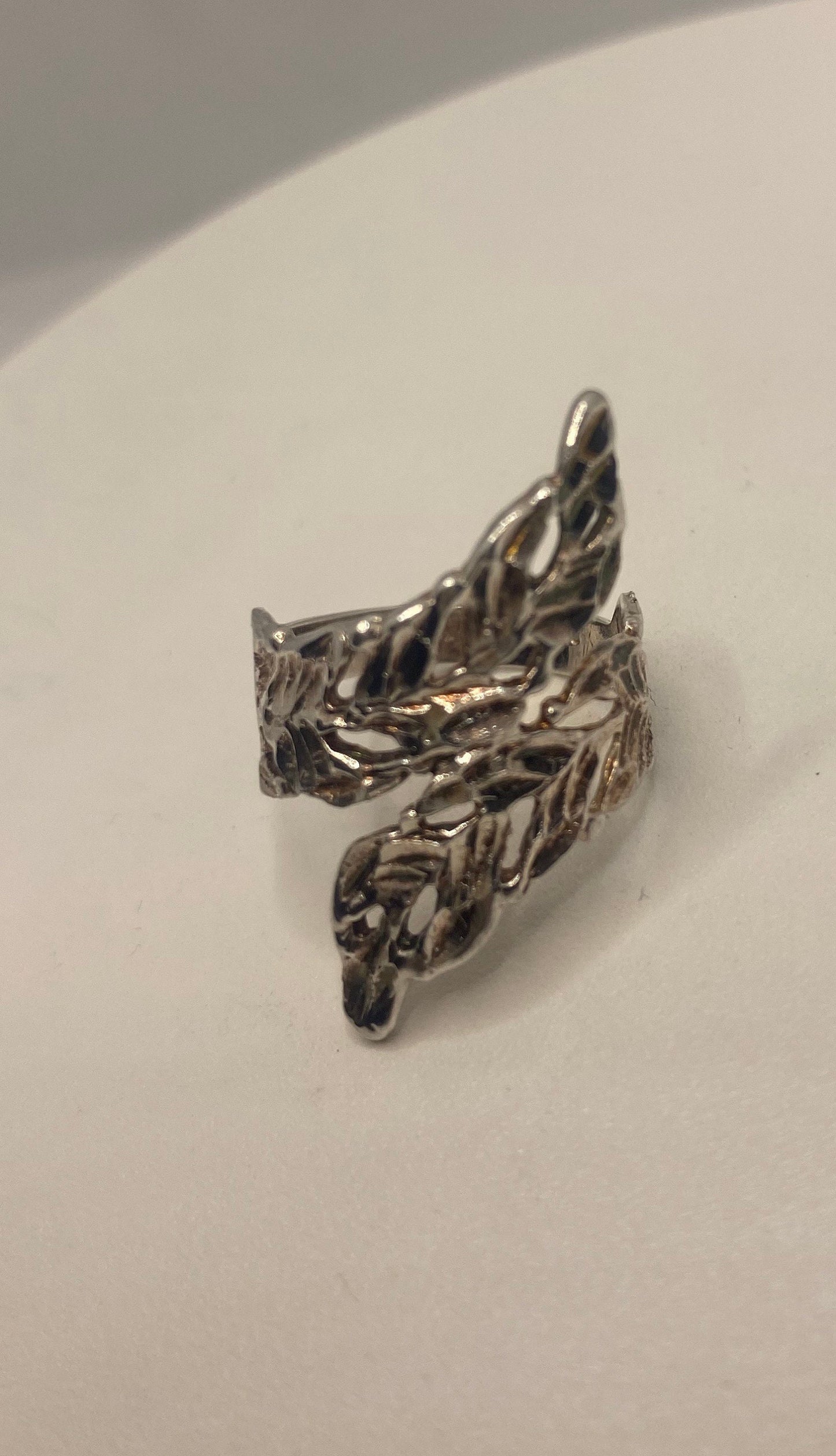 Vintage 925 Sterling Silver leaf Spoon Ring