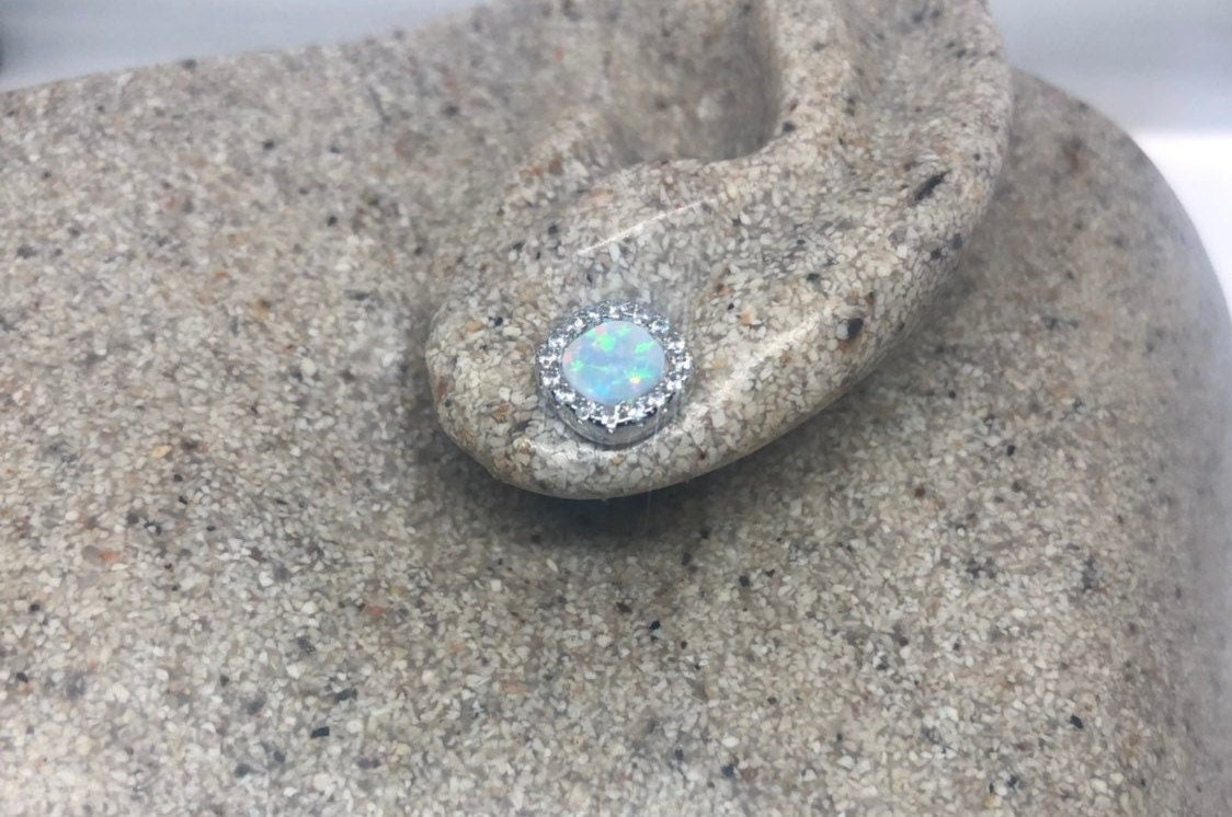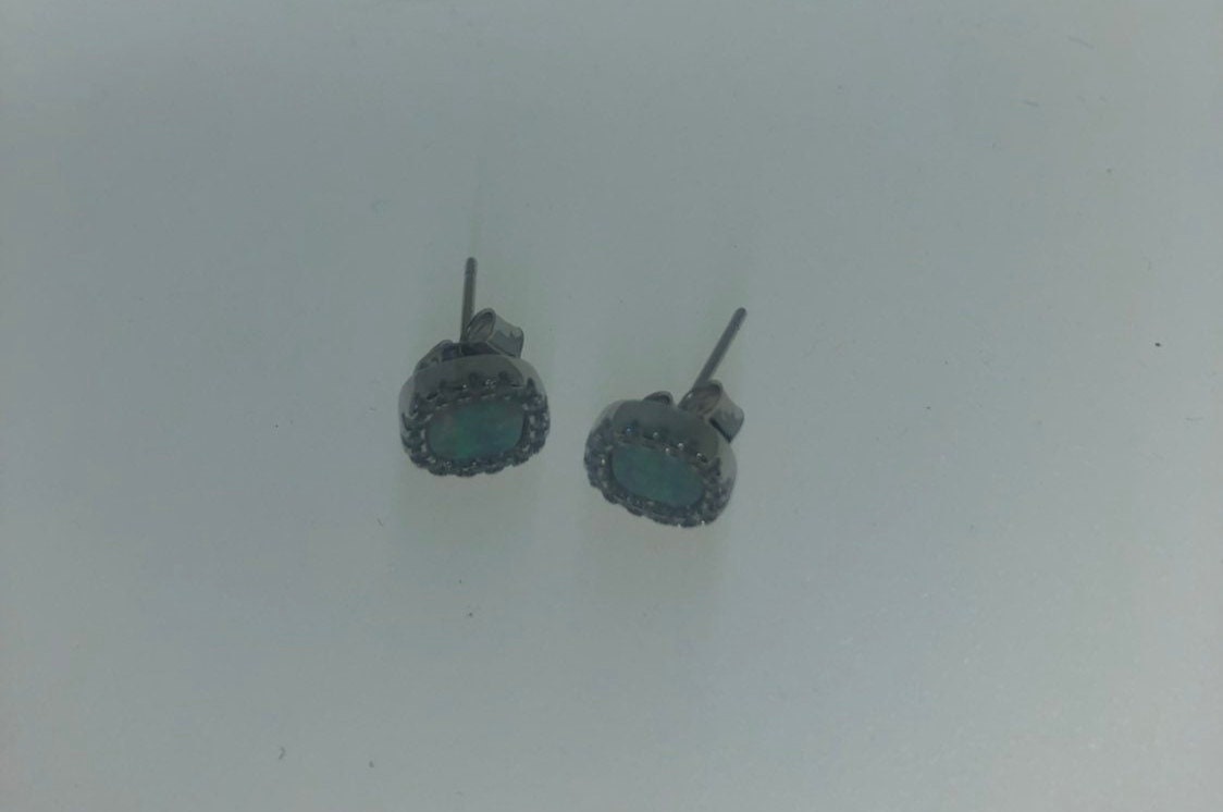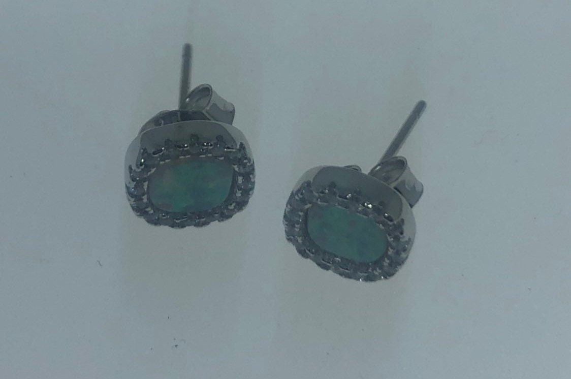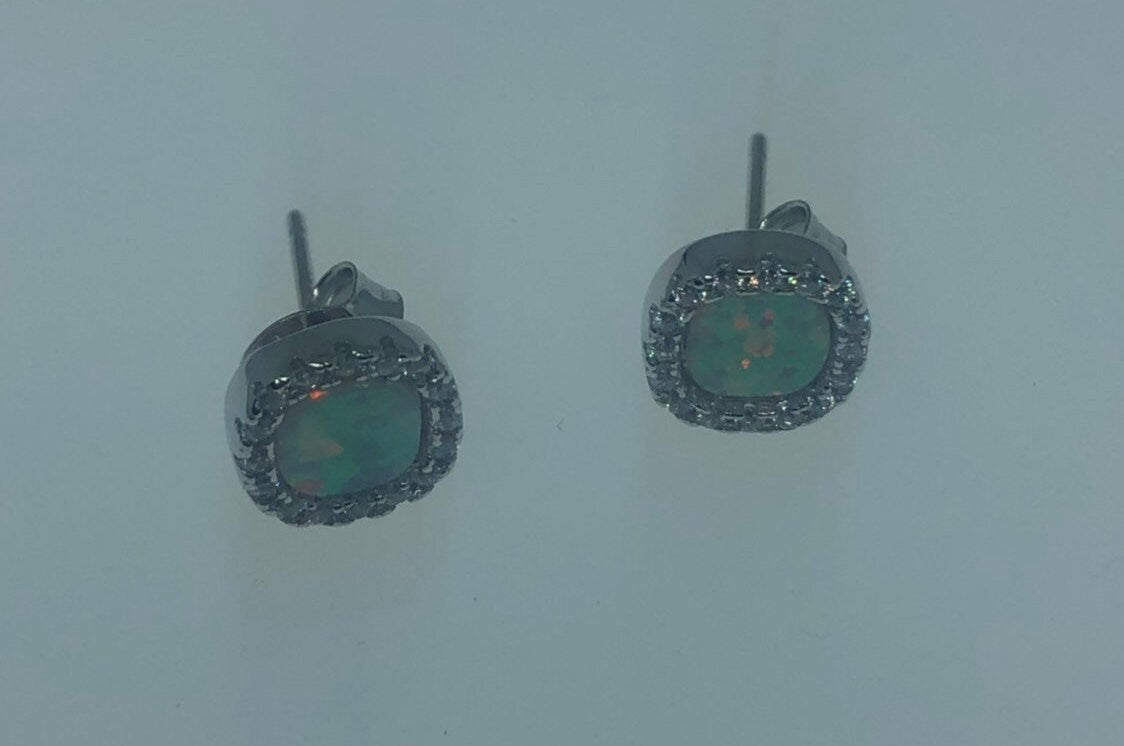 Delicate and detailed vintage Sterling Silver earrings set with Genuine Opal